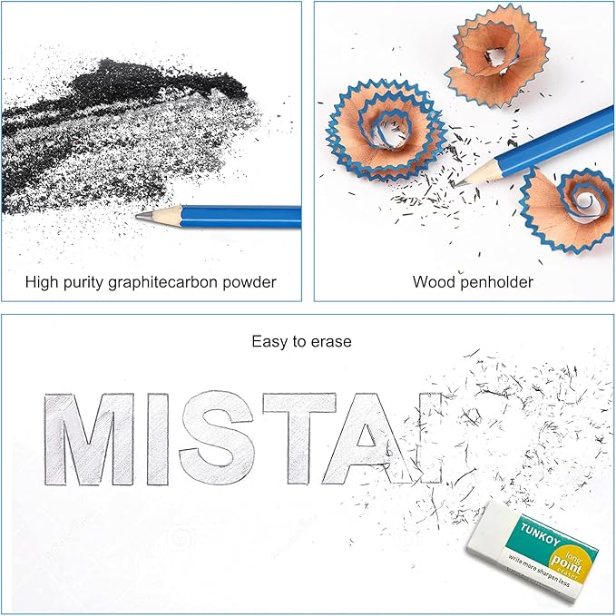 - High quality:Drawing pencil special bonding gives the graphite leads extra fracture resistance,gives them excellent permanent point strength.They are easy to sharpen and erase,Suitable for crafting fine detailed illustrations and textured shading.