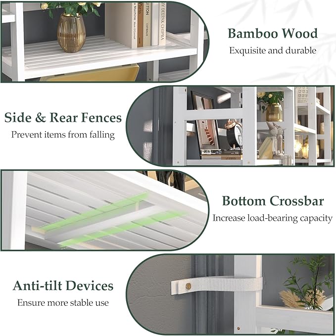 - Ultra-Sturdy Structure: Made of 100% thickened bamboo wood with exquisite craftsmanship and a sturdy structure for long-term use. The triple wide bookshelf is equipped with side and rear fences to prevent books or items from falling. Besides, there is a crossbar under each shelf to enhance the load-bearing capacity. For safety, you can secure the bamboo bookshelf to the wall using the included anti-tip device to prevent it from accidentally tipping over.