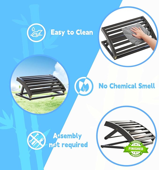 • No Smell & Easy to Clean: The footrest is constructed from bamboo and has no smell, wipe it with wet towel, then air dry