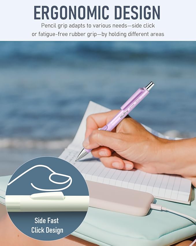 - Fast Click Design: Our mechanical pencil with convenient fast click advance button on side, which lets you easily load lead without changing writing position