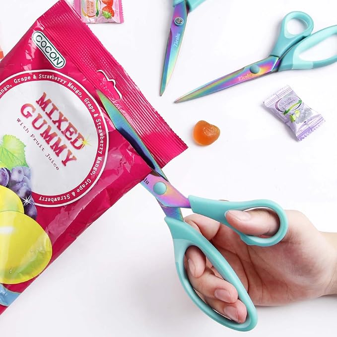 • 3 pair 8.5" Cute Rainbow Scissors in retail packaging, Different Colored Scissors Can be Used in Different Places