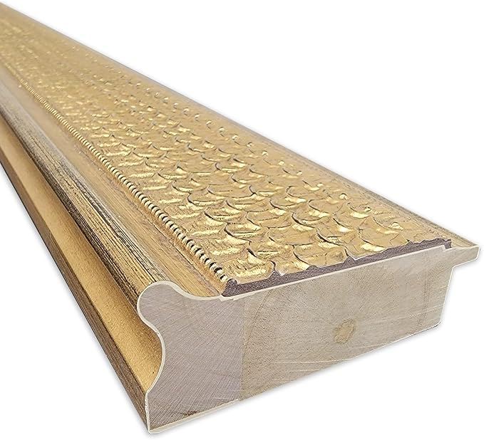 - 100% REAL WOOD FRAME DETAILS: The Trellis Gold Frame is a semi gloss finish decorative gold frame featuring a raised scallop pattern reminiscent of the shape of an arched garden trellis with tiny bead work lines on either side. The frame is 3.25 in. wide and stands 1.25 in. off the wall.