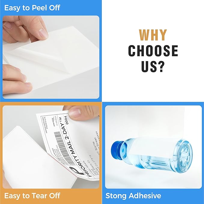 - NO JAM PRINTING: 4x6 shipping labels designed with a moderate thickness and a smooth, even surface texture, striking a balance that avoids printer's bending or jamming