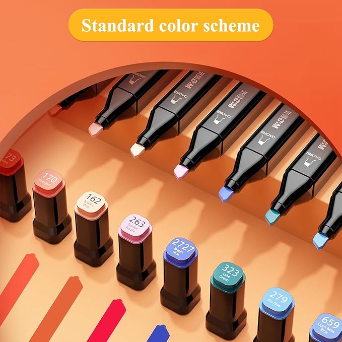- Square-shaped boddy and color -colde: The alcohol markers have a unique, ergonomic square-shaped penholder for a better, more comfortable experience, making them suitable for prolonged use. The color number is clearly defined on each marker, making it easy to keep track of your colors.