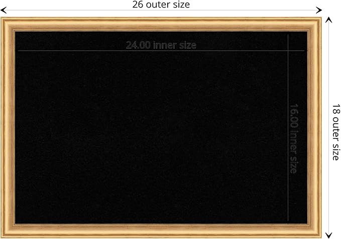 - DIMENSIONS: The overall size of this framed corkboard measures 26 in. x 18 in., including the frame. Its functional cork board area measures 24 in. x 16 in.