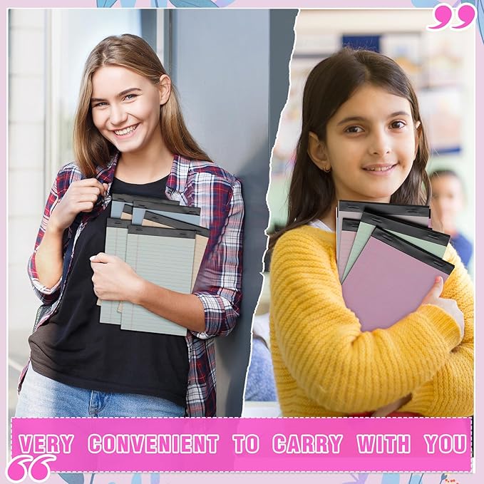 Lincia 12 Pcs 12 Pcs 5" x 8" Small Legal Pads Colored Lined Note Pads Narrow Ruled Writing Notepads 50 Sheets Per Micro Paper Notebook Lined and Perforated for College Office Supplies (Sweet Colors)