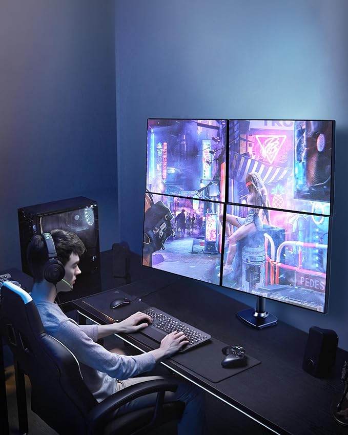 - 【Maximize Desktop Space】 Since the long monitor arm offers swivel, tilt, and rotate adjustment, this quad monitor stand can be retracted to the edge of the desk. Coupled with hidden cable management, a neat and functional workspace is always refreshing.