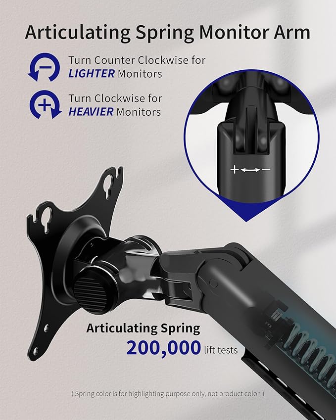 - 【Premium Spring Arm】 ErgoUnion computer monitor arm features a flexible movement structure, enabling instant and effortless adjustments to achieve the optimal orientation for work.