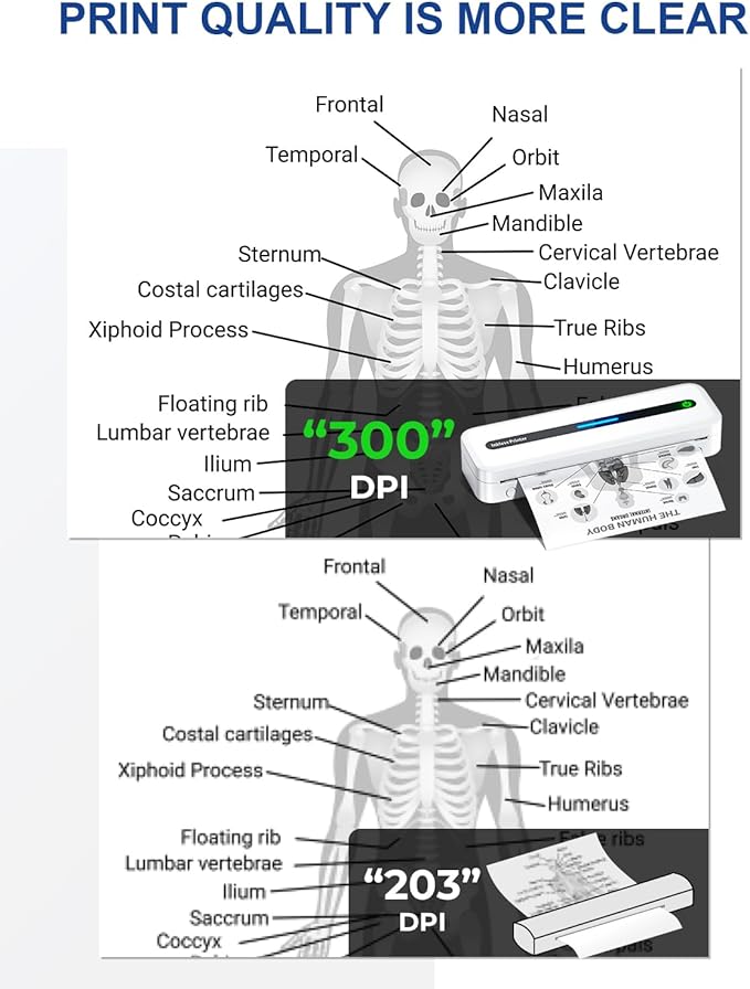 - CRISP PRINTS & USER-FRIENDLY: Our wireless thermal printer is 300DPI, beating most of the mini thermal printers on the market is 203DPI. Prints are sharper and clearer! And Installing and using mini portable printer just in 1 minute.
