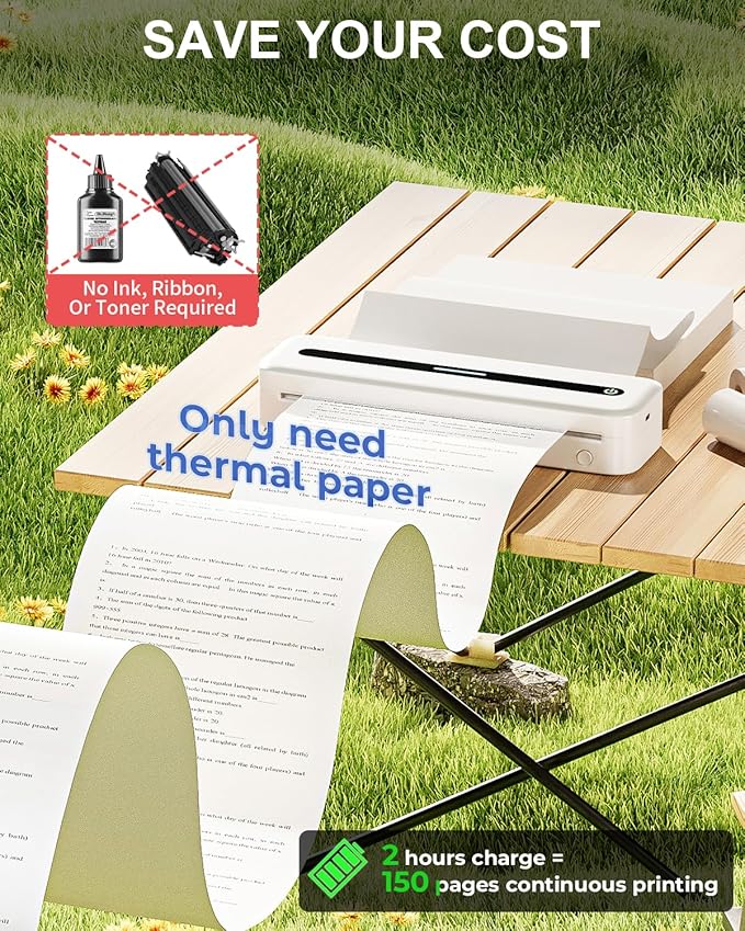 - SAVE CASH & TIME: COLORWING M832 inkless printer! No ink, ribbon, toner - $0 cost wonder! Just grab thermal paper. Cleaner, handier, no health risks! Small slim printer, big capacity. 2-hour charge = 150 sheets non-stop!