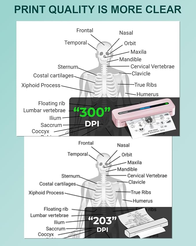 - CLEAR PRINT QUAILITY & EASY TO USE: Our wireless thermal printer is 300DPI, compared to most of the mini thermal printers on the market is 203DPI, the print quality is more clear. The mini portable printer is easy to install and use. The printer includes detailed videos on the official website to assist you in making printing easier and simpler.