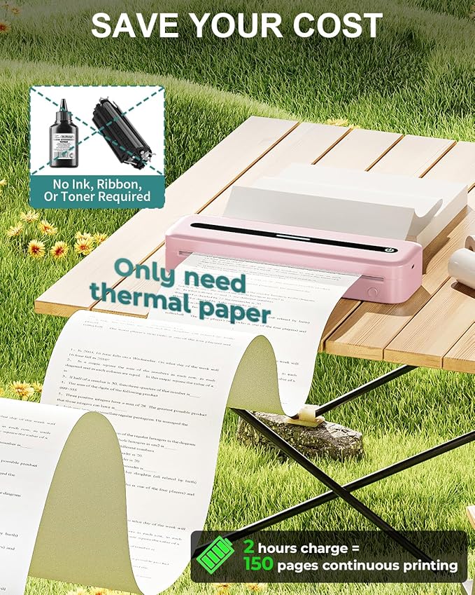 - SAVE YOUR COST AND TIME: COLORWING no ink printer donβt need ink, ribbon or toner $0 costing, only $0.14 thermal paper. More cleaner and more convenient, and does not jeopardize your human health. Small printer with large capacity, charging for 2 hours can print 300 sheets continuously.