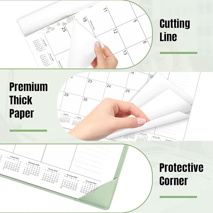 Gannyfer Large Desk Calendar 2025-2026 with Desktop Mat, 22" x 17" Desktop Pad Calendar, 18 Month Table Calendar from July 2025 to Dec 2026, Office Supplies Perfect for Home and Office (Green)