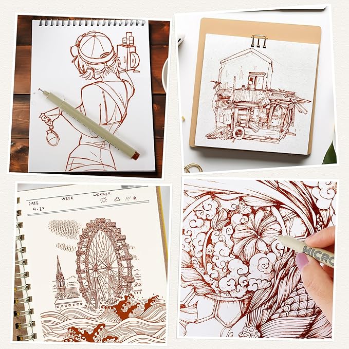 - π¨ Unique Sepia Ink: KERIFI sepia micro pens uses highly saturated sepia pigments, unlike the touch provided by black lines, sepia ink makes the lines in the drawing subtle, giving it some elegant vintage flair. Paired with watercolor painting, the drawing is softer and added dimension to drawing. Let's do a variety of bold creative attempts, such as painting some tree trunks, tree houses, autumn scenery, landscapes and portraits.
