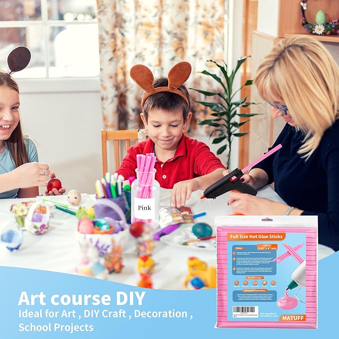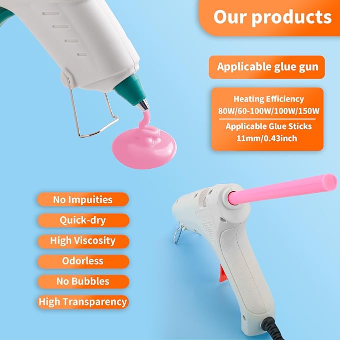 - 【Wide Application】hot glue gun sticks are perfect for crafting, card making, scrapbooking, carton sealing, phone case beauty, electronic appliances, gluing projects, waxing seal stamp, general repairs,creating arts, holiday crafts, decorations, home, office, school DIY and toys.