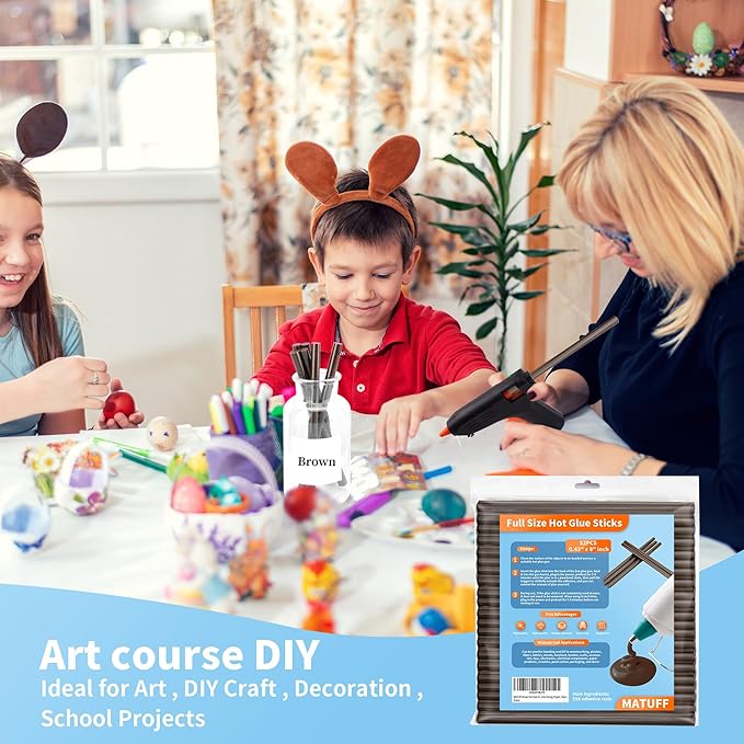 MATUFF Brown hot Glue Stick Full Size 0.43” Dia x 8” Long, 52 pcs Hot melt Adhesive Glue Sticks, Colored Glue Gun Sticks for Christmas Decoration DIY Crafts Arts School Home Gluing Project