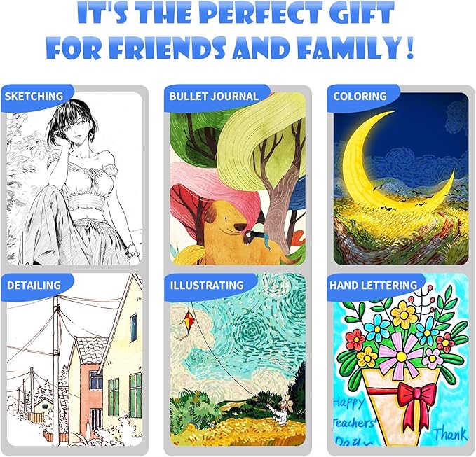 - PRESENTS PREFERENCE:Multifunctional Coloring Markers for drawing, sketching, writing, journaling, lettering, calligraphy, design, manga, fine art, crafting, doodling, watercolor painting, illustrations, bullet journal, planner, calendar, card making, stamping, scrapbooking. Creative art craft supplies and marker pens are great presents for kids, students, teachers, women, men, beginners, and artists, at Christmas, anniversaries, Valentine's Day, graduations, and birthdays.