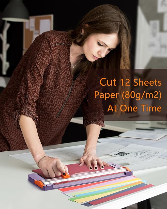 • Efficient Cutting: Cut A3, A4, A5 paper, photos, cards, laminated materials (within 1.5 mm), and more. Cut up to 12 sheets of paper (80 g/m2) at once for maximum efficiency