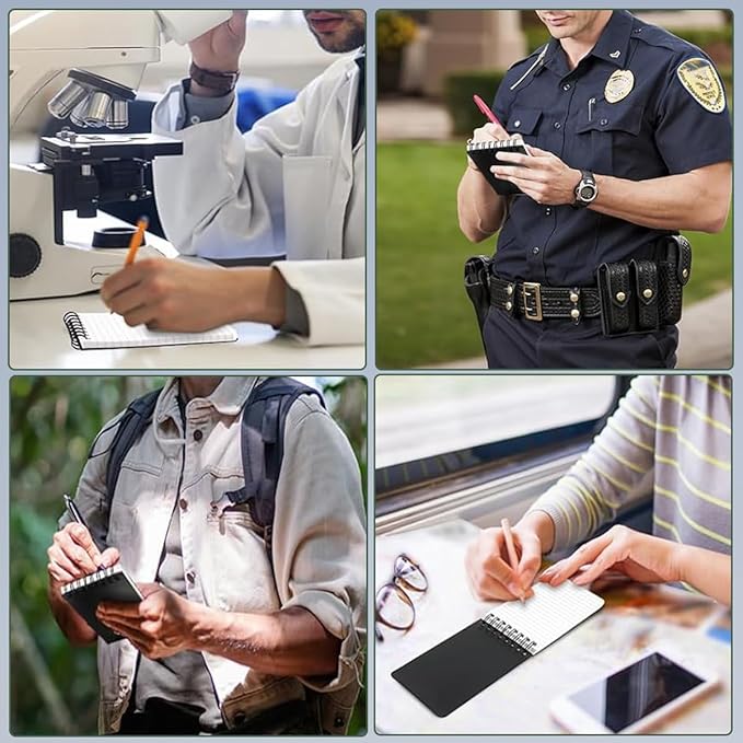- 4 PACK: Comes with 3"Γ5" weatherproof spiral notepads. 100 pages / 50 sheets per steno pad. Great for outdoor workers, traveling explorers, and field researchers.