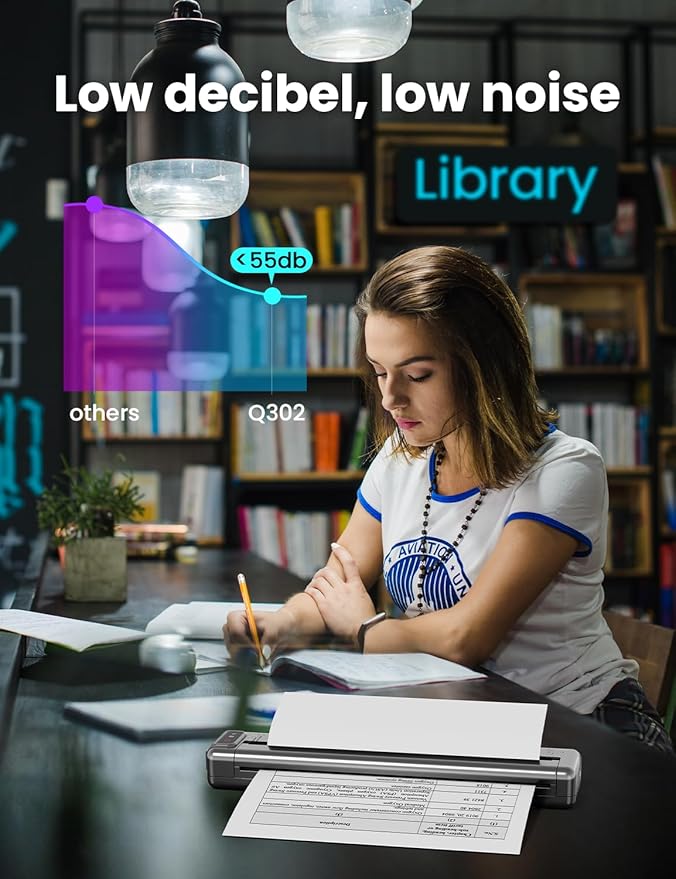 - Phomemo Q302 Thermal Printer - 【Silent Printing Upgrade】: Phomemo Q302 portable thermal printer offer 4 different print sizes for you to choose from: US Letter, A4, B5, A5. The various print sizes can meet the printing needs of different scenarios, whether it is a contract, report or personal documents can be easily dealt with. Phomemo Q302 wireless printer can also do silent printing, as an entrepreneur or businessman, you can use this printer in meetings and other silent occasions, which will bring great convenience to your work