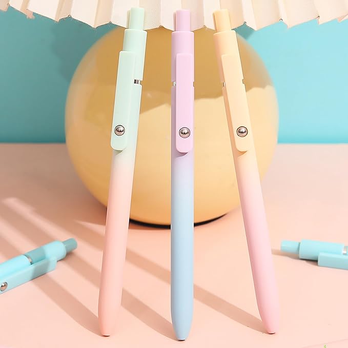 - [Gel Pens Package] You will receive 5pcs quick-drying ink pens, Each pen boasts a striking gradient barrel, adding a touch of elegance and sophistication to your stationery collection.Morandi soft silicone features grip bring a super soft touch feeling.