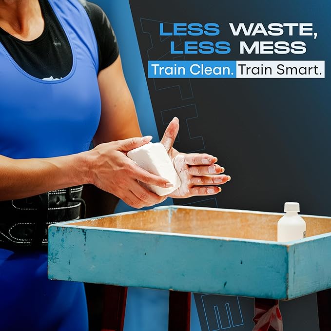 - 【LOW MESS, CLEAN APPLICATION】: This gym chalk applies smoothly to the hands and stays in place during use. Designed to reduce airborne dust and keep your workout area clean—ideal for home gyms, commercial gyms, or climbing centers.