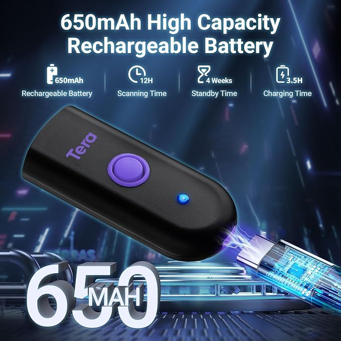 - 【Mini Pocket 1D Scanner】Completely mini pocket size and 39g/1.4oz ultralightweight, making Tera barcode scanner to be a better choice for portable use. Anytime you want to collect data, just connect it with your device via Bluetooth or use the storage mode.especially for book store, online store, sales shop, warehouse, etc place.