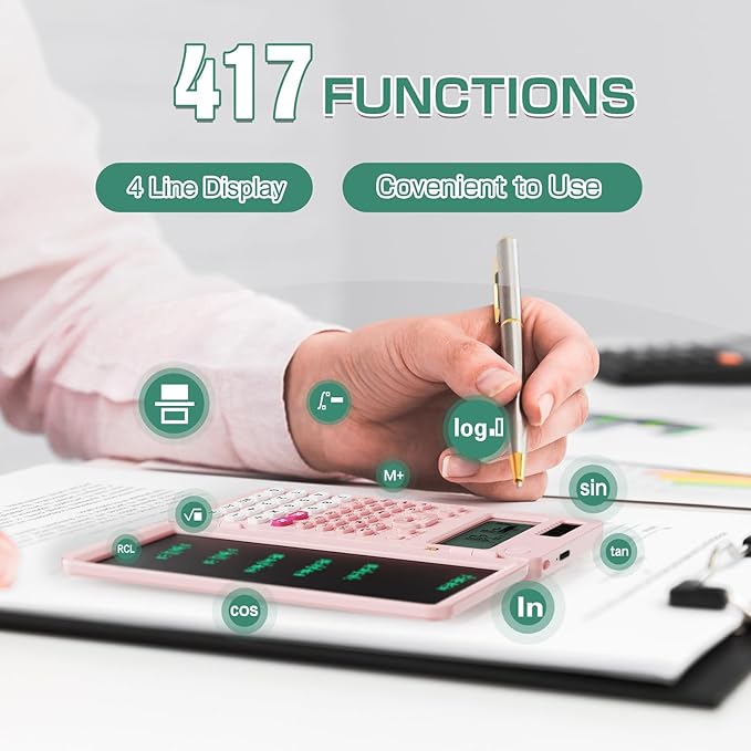 Rechargeable ROATEE 991ES MAX Scientific Calculators, CalcNote Multiview 4-Line Display with LCD Writing Tablet Notepad, Foldable Portable for Business High School College Students and Teacher(Pink)
