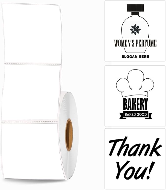 2 Inch White Square Thermal Sticker Labels, Self-Adhesive Direct Thermal Labels,DIY Design, QR Code, Name Tag, Brand Label,Gift Label (White 600 PCS/1 Roll)