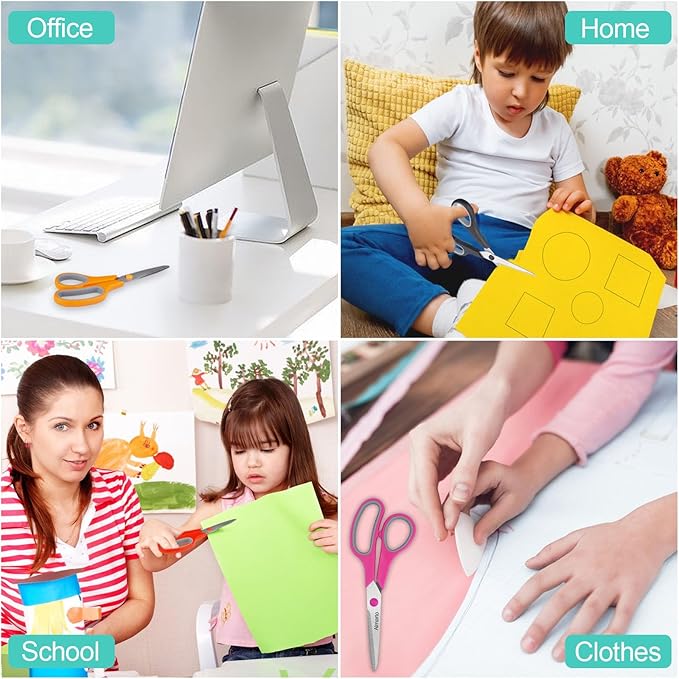 - Multipurpose/ Vibrant 6 Colors Pack Scissors: Colors: Aqua. Different Colored Scissors, Can Be Used In Different Places. Ease to holding, work perfectly for their crafting for many different tasks. Comfortable to use in: Office, School, House Household, High/Middle School Students Teacher, Sewing Fabric Art Craft DIY, laundry room, bathroom, garage, kitchen or other occasions supplies.