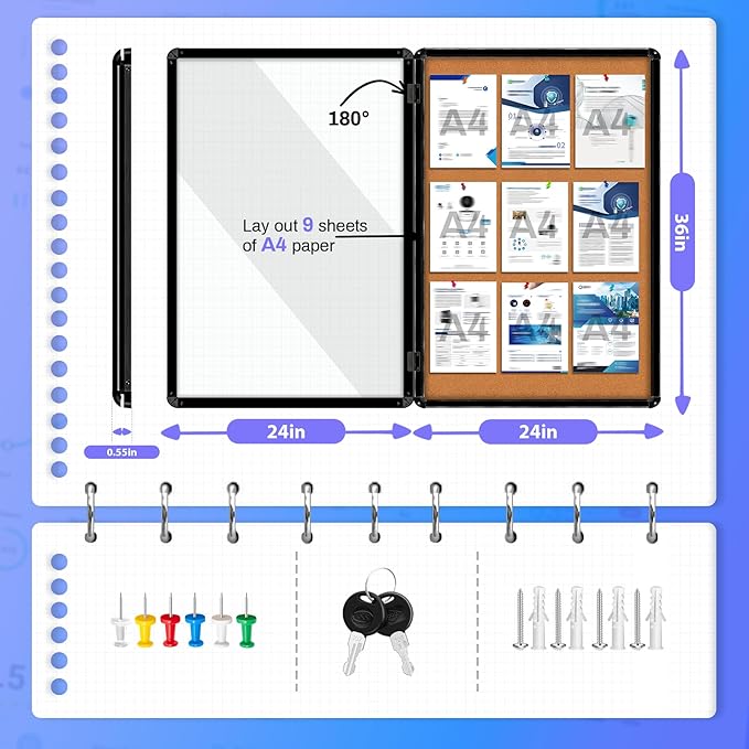 - SECURE AND PROTECTED NOTICE BOARD: Enclosed Bulletin Board keep important information safe from the elements, theft, or tampering with lockable acrylic doors and key mechanisms.Save valuable wall space and maintain a clean and organized appearance in offices, schools, or community centers.