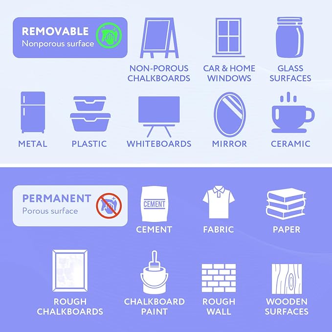 - Easy to Clean: When youβre ready to write & start fresh, a mere wipe of a wet paper towel will remove your erasable chalk markers completely and easily from almost any non-porous surface