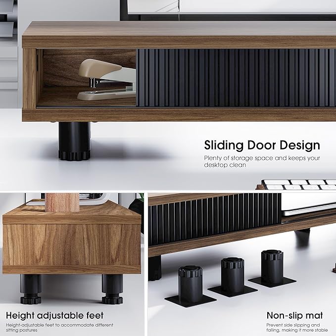 - 【Space Optimization】: Experience effortless desk organization with our monitor stand, 2-tier storage space, 42.5 inches long monitor stand, 3 high capacity compartments, and a convenient sliding drawer, and cable management openings. Streamline your workspace and make your work a breeze