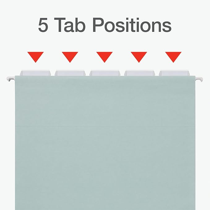 • Letter size hanging folders have smaller 1/5-cut tabs in assorted positions; stagger or place them all down the center to quickly identify your files