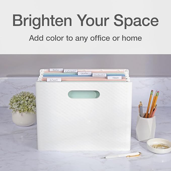 • Work faster and smarter; color hanging folders in calming pastels (khaki, peach, light blue and light green) let you spot the right file through color association