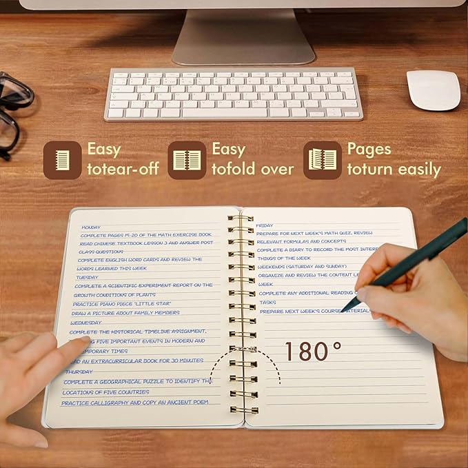 - Durable and Elegant Design: The Oneirom Spiral Notebook features a premium PU leather cover, twin-wire binding provides a sturdy construction, allowing the notebook to lay flat for easy writing. The water-resistant cover protects your notes from spills and damage, making it a reliable choice for daily use.