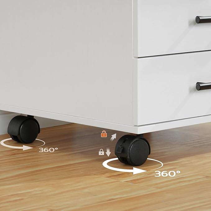- Quick Moving Casters: This small file cabinet comes with 4 casters for free movement. The wheels slide smoothly and flexibly, with wear-resistant and noise-reducing functions, and the 2 wheels with brakes are gently locked to securely fix the storage box