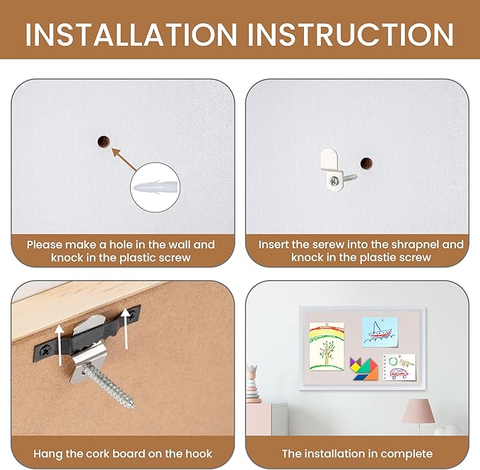 - Easy Installation: The Pin board comes with 10 pushpins and basic wall mounting hardware. You can use the screws provided to install the corkboard, and its flexible installation options allow for horizontal or vertical mounting to suit your space.