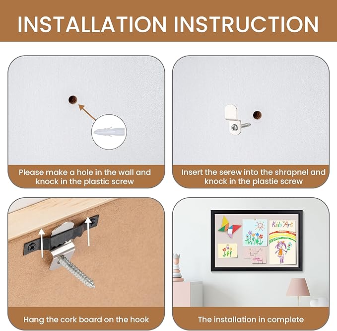- Easy Installation: The Pin board comes with 10 pushpins and basic wall mounting hardware. You can use the screws provided to install the corkboard, and its flexible installation options allow for horizontal or vertical mounting to suit your space.