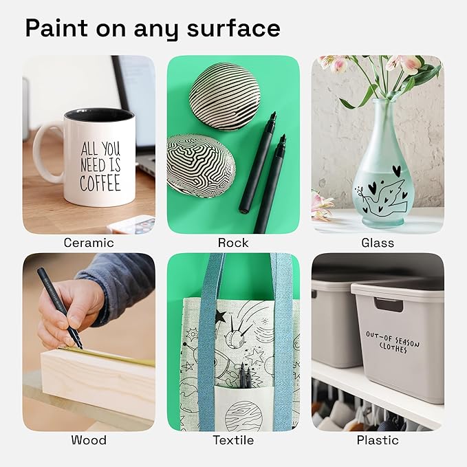 - Non-Toxic: This oil paint set conforms to ASTM D-4236 safety standards. Plus, thereβs no odor with your oil markers paint pens. Each black paint pen is ready to use with any project and is safe for kids and adults!