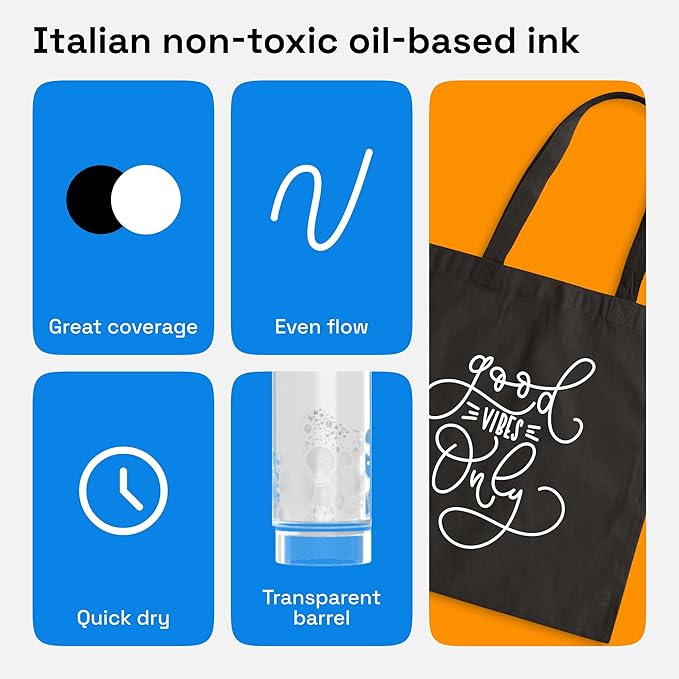 - Multiple Surfaces: Use these oil paint pens as oil markers for plastic and glass or as oil based fabric markers for clothes. Each white marker permanent is water-resistant. Theyβre also good for leather, vinyl, or epoxy resin. And the nibs are solid, even on rocks!