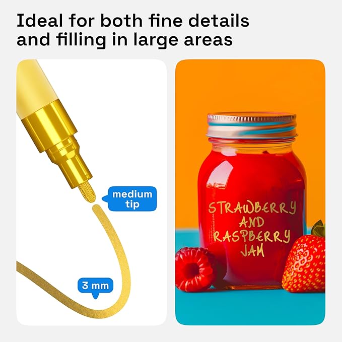- Medium Tip: Each oil paint pen is made for fine line work. Detail your DIY project with these oil based pens. Each oil based paint marker will add some shine to your art, no matter the occasion β Christmas, birthday, or wedding decorations!