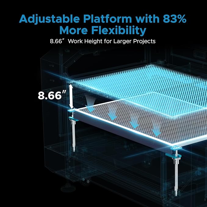 - Get Right to Work with Autofocus: No more struggling with manual adjustments or guesswork. This laser engraving machine's workbeds adjust up and down at the touch of a button and the preinstalled autofocus will automatically find the right focal distance for you.