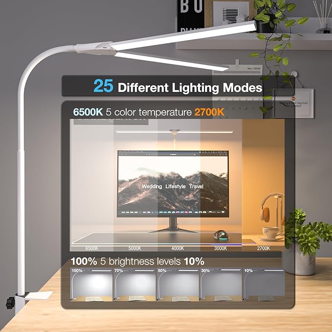 - 360Β° Flexible Gooseneck: The flexible gooseneck monitor lamp can be freely adjusted 360Β° to avoid direct light on your eyes and reduce eye fatigue. Workbench light with 70inch of lighting area, the maximum working height can reach 27 inches. Perfect for reading, working, studying, drawing, sewing, crafting, architect, etc