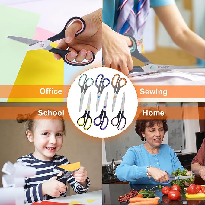 - Comfort Grip Handles: Designed for both right and left-handed users, provide a comfortable and secure grip, reducing hand fatigue during extended use, ensuring everyone can easily handle and use these scissors, these all-purpose scissors are a must-have tool.