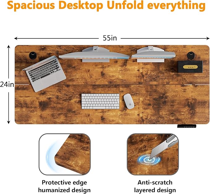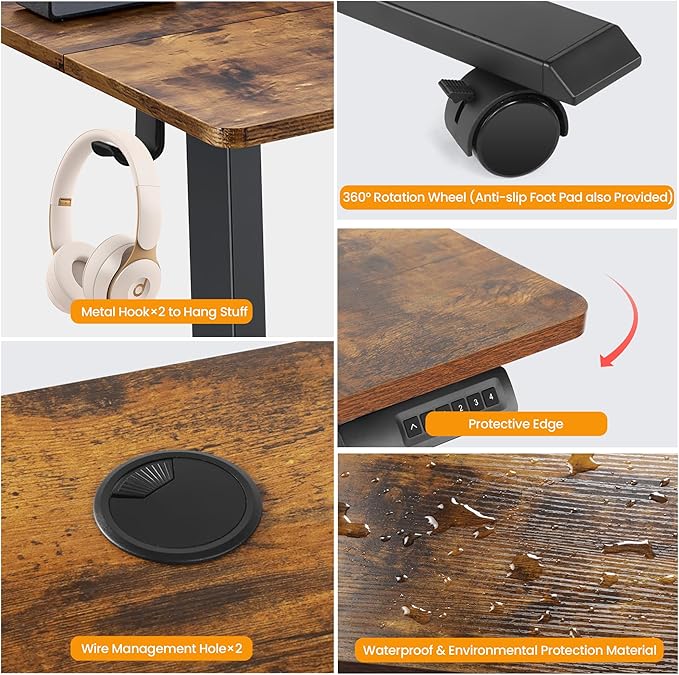 - 【Durable & Quiet Motor】– Designed for peak performance, our electric standing desk boasts a high-quality motor that delivers smooth, quiet height adjustments from 27.9" to 46.8", while the advanced anti-collision system ensures safe operation without interruptions