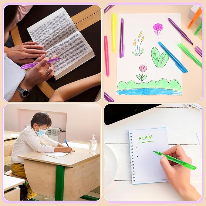 - Fluorescent Colors:These highlighters come in bright assorted colors, and the transparent shell allows you to see its beautiful colors at a glance, marking important knowledge points more prominently when you're reading and studying.