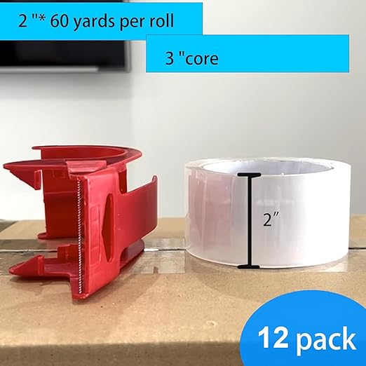 • Set: 12 rolls 2 inches X 60 yards transparent BOPP packaging tape total of 720 yards, with a dispenser.
