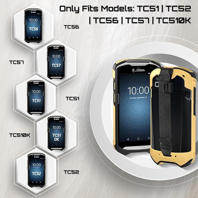 - Ergonomic Hand Strap: Offers a comfortable grip for extended use, reducing fatigue and enhancing device handling, ensuring your scanner is always ready for action. The non-slip hand strap boosts security, making it an essential accessory for Zebra TC51 TC52 TC56 TC57 TC510K device.