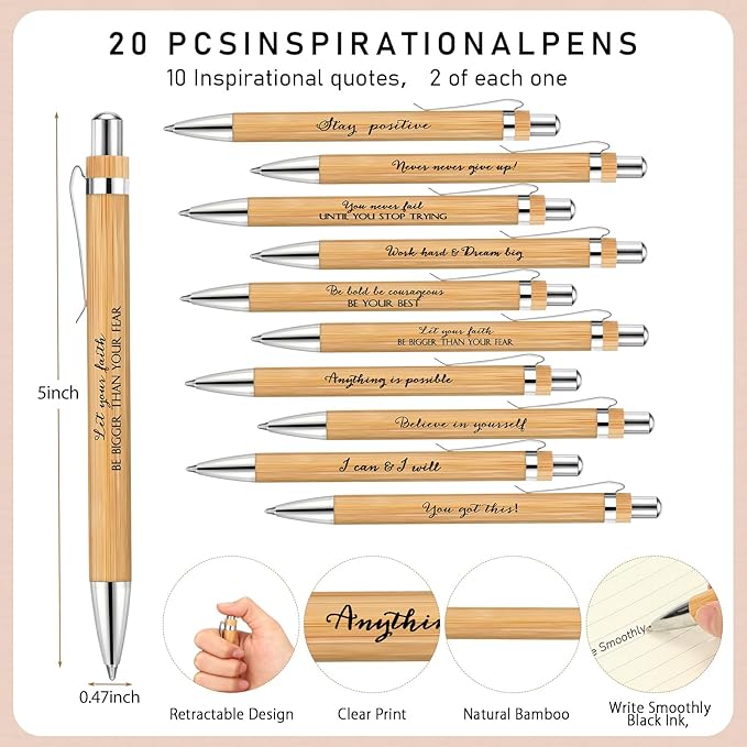 - Quality Material: our motivational notebooks adopt kraft paper cover, clear printed, not easy to break or deform, and the inner pages are made of quality paper, smooth to write and thick enough; The bamboo pens are sturdy enough, featuring black ink that is easy to dry to avoid ink bleeding, giving you a comfortable writing experience